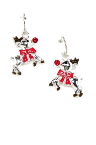 18X17mm Sterling Silver Enameled Christmas Rudolph Charm Earrings with sparkling red crystal noses, brown enameled antlers and hoofs and big red enameled bows. Adorable!