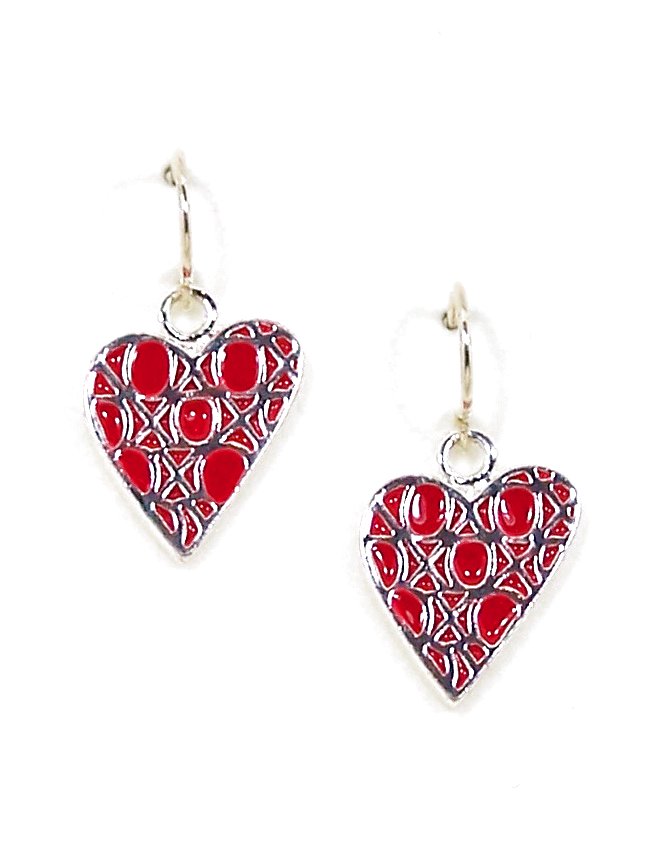 Sterling Silver Red Enamelled Valentine Heart Earrings, cleverly inlaid with an XOXO design.